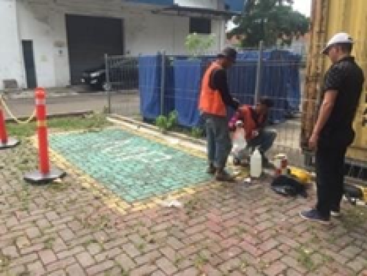 - Pekerjaan Pengecetan Lantai di tempat berkumpul parkiran belakang, dengan cat exterior biasa : ukuran 2 x 4,2 m (8,4 m2)